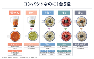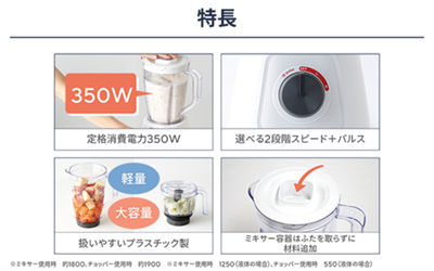 *1)硬い食材、粘り気が強い食材でのご使用はお控え下さい